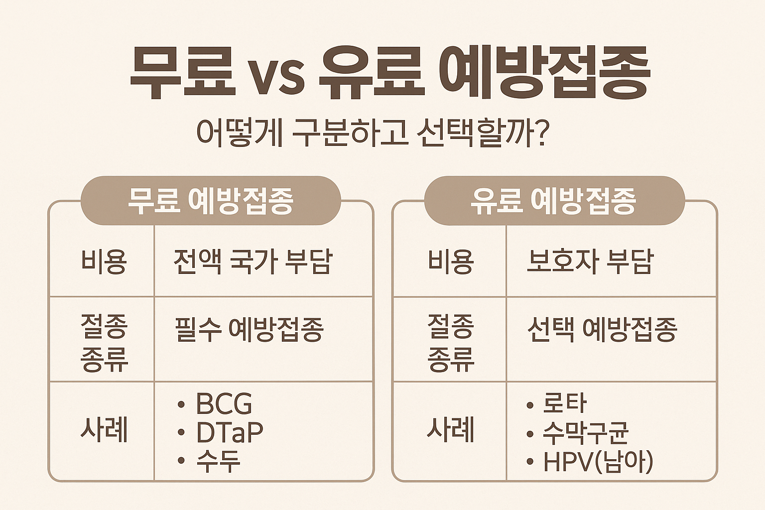 우리 아이의 건강을 지키는 첫 걸음, 예방접종. 하지만 병원에 가면 '무료 예방접종입니다'라는 말과 함께 간단히 끝나는 경우도 있고, 어떤 경우엔 "이건 유료예요. 비용이 ○○원입니다"라는 설명이 따라옵니다. 같은 예방접종인데 어떤 건 무료고, 어떤 건 유료일까? 또, 유료 백신은 꼭 맞아야 하는 걸까? 초보 부모라면 누구나 한 번쯤 겪는 이 고민에 대해, 지금부터 자세히 설명드리겠습니다.
